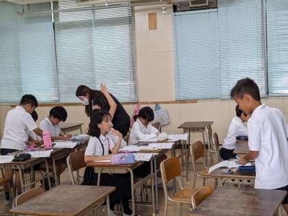 算数の授業の様子です。習熟度別少人数で学習をしていました。ひし形の描き方を考えていました。決まり通りにするときちん描けるのですが、描き方をしっかりと覚えましょう。