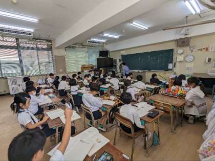 国語の授業の様子です。似た意味を表す言葉を考えていました。日本語は同じ内容を表す言葉がたくさんあります。おどろく・びっくりする等です。「たくさん」に似た意味をもつ言葉を集めていました。語彙を増やす上でも大切な学習ですね。