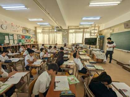 道徳の授業の様子です。「花さき山」の単元を学習していました。心の美しさについて考えていました。子ども達は、教科書から読み取ったことを積極的に手をあげて発表していました。いいお話なので1度読んでみてください。