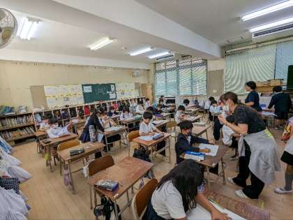 国語の授業の様子です。ニャーゴのテストをしていました。みんながんばっていました。いい結果が出るといいですね。