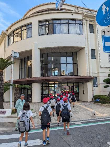 学校に到着しました。暑かったけど最後までがんばりました。今日は早く寝るようにしましょう。