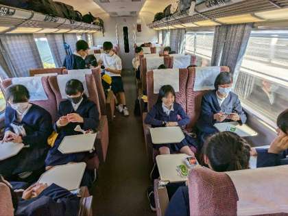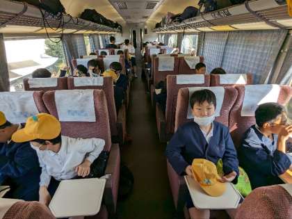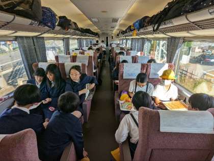 車内の様子です。コロナの制限がなくなり、みんな楽しんでいます。