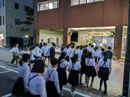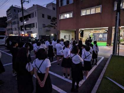 避難訓練の様子です。時間厳守が避難できました。素晴らしいです。この後、夕食です。楽しみです。
