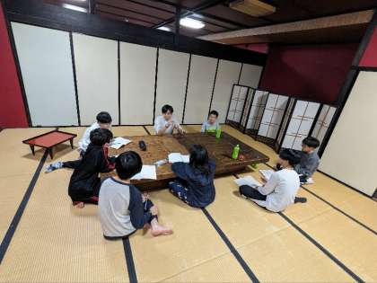 リーダー会議の様子です。今日の反省と明日の予定の確認をしています。