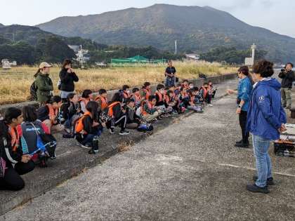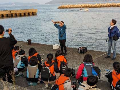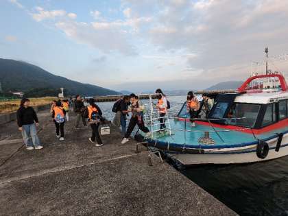 菅島に到着しました。説明を聞いています。