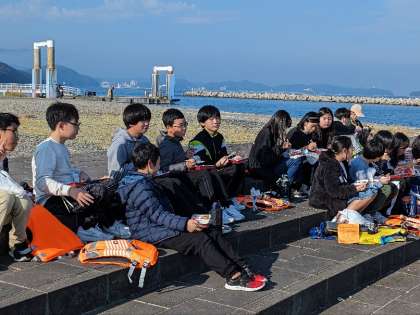 起床から3時間、ようやく朝食です。海で食べる食事は、お腹もペコペコでおいしいです。いただきます。