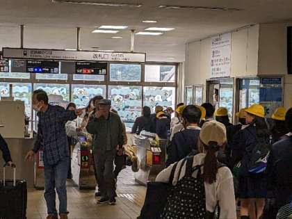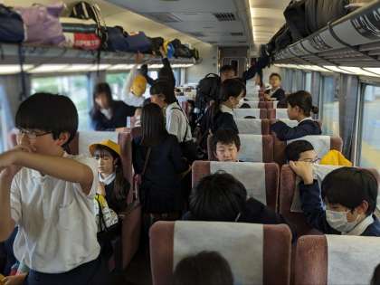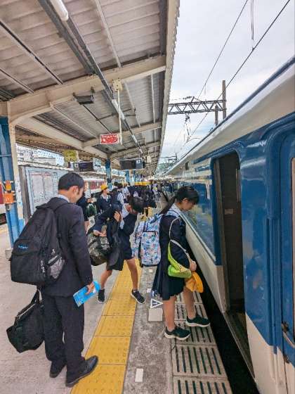 海月館を出発し、鳥羽駅から定刻に出発しました。みんな元気です。