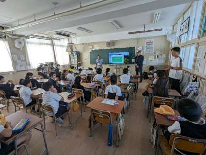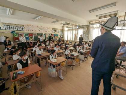 4年生もJICAの研修生のとの交流会を行いました。区長さんも来校され、授業を見学されました。中央アジアにあるキルギスのお話を聞きました。山の多い国で奈良県の十津川村に行ったときに、キルギスのことを思い出したと話されてました。子ども達は、遠い外国に思いをはせていました。