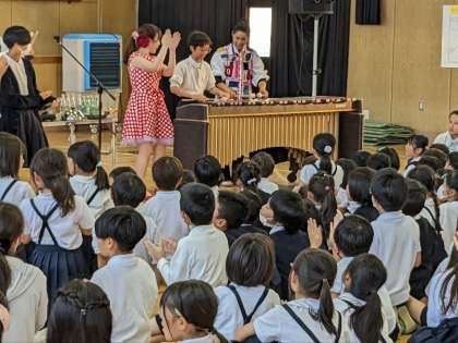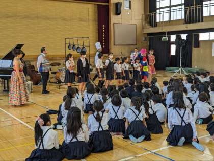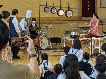 最後に、感想を発表した子ども達が、マリンバやドラムやフライパン等の楽器で演奏することもできました。楽しいひと時を過ごすことができました。