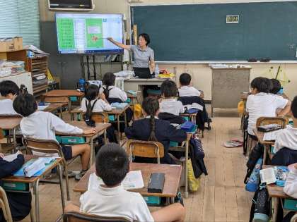 算数の授業の様子です。5の段の九九を学んでいました。とにかく何度も唱えて覚えましょう。そして何度も練習問題をして使いこなしましょう。絶対に必要な学習です。がんばりましょう。