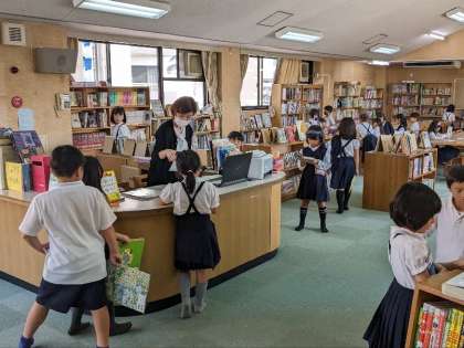 読書活動の様子です。借りた本の返却の後に、自由読書を楽しんでいました。いろいろなジャンルの本を読んで、知識を増やしていきましょう。