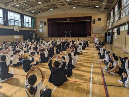 講堂で、児童集会を行いました。今日の集会は、〇×クイズでした。学校に関するクイズでした。少し難しかったのか全問正解者は、少なかったです。全問正解した人には、賞賛の拍手が送られました。