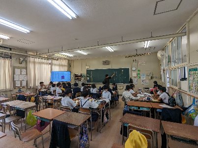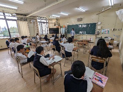 国語の授業の様子です。習熟度別少人数で学習をしていました。「ヒロシマのうた」の学習をしていました。疑問点を抽出し、班で検討していました。戦時下の日本のお話です。場面の背景が難しいですが、しっかり内容を読み取りましょう。