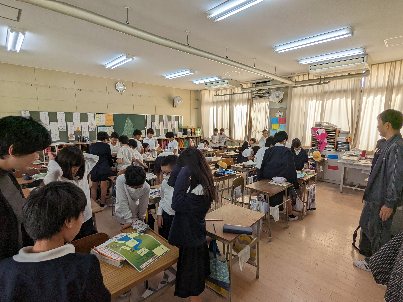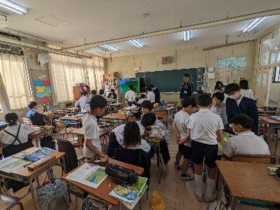 理科の授業の様子です。川の氾濫を防ぐ方法について、グループで相談していました。流れる水の働きを発展させた学習ですね。治水対策は、日本には必要不可欠な重要事項ですね。有効な対策を見つけて、それを世の中に発表していきましょう。