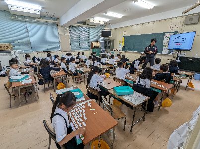 算数の授業の様子です。計算カードを使って、ひき算の練習をしていました。早い子はどんどん問題を解いていました。早く正確に計算することも大切ですね。