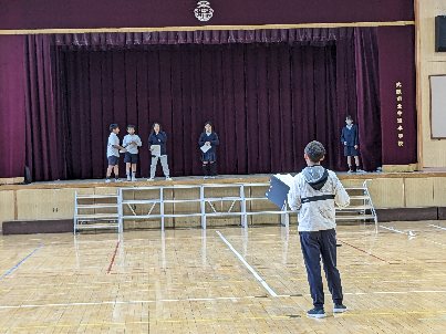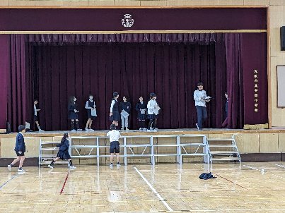 学習発表会の舞台練習をしていました。講堂の後ろまで声が届くように大きな声を出していました。がんばりましょう。