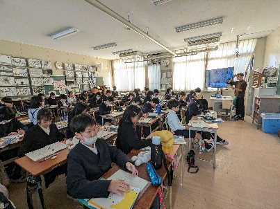 社会科の授業の様子です。江戸時代の文化について学習をしていました。寺子屋の画像が出ていました。皆さんも6年生で見ているのではないでしょうか。教科書の中身がかなり変わっている個所もありますが、昔と変わらないものもあります。寺子屋の様子の絵は、昔と変わりがありませんでした。