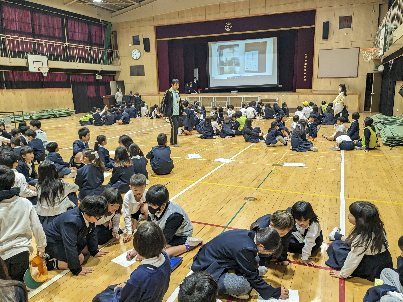講堂で、児童集会を行いました。今日は、校内場所あてクイズでした。画像に出てくる部屋を当てるクイズです。順調に答えていましたが、事務室が難しかったらしく全問正解の班は少なかったです。正解した班には、賞賛の拍手が送られました。
