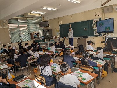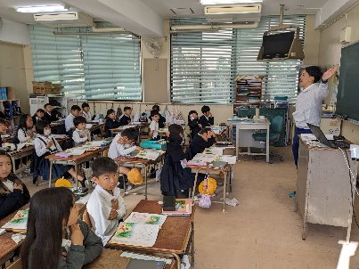 国語の授業の様子です。物語の読み取りをしていました。先生の質問に答えるために、思いっきり手を伸ばしてアピールする子が多くいたのが印象的でした。学習活動に、よくがんばっています。
