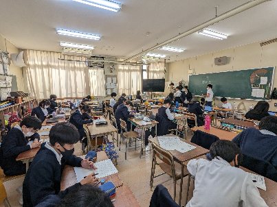 国語の授業の様子です。卒業文集を書いていました。一生の思い出に残る作文になりますね。何を書くのかをしっかり考えて、今の思いを書き残しましょう。