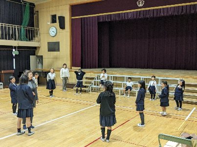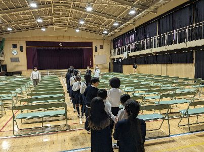 講堂で校内発表会の練習を行いました。入場から演技する場所退場までの位置の確認をしていました。発表会まで、練習日は後2回しかありません。がんばりましょう。