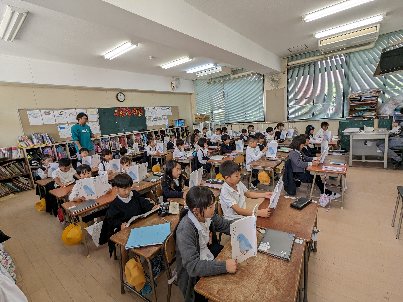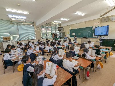 国語の授業の様子です。「おとうとねずみ チロ」を音読していました。デジタル教科書の範読に続いて読んでいました。パソコンは、授業のいろいろな場面で活躍していますね。