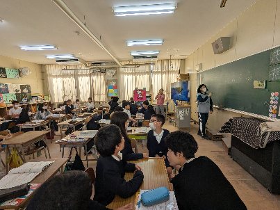 英語の授業の様子です。某牛丼店のメニューのプライス当てクイズをしていました。金額予想も、英語で発表していました。お店でもやってみましょう。