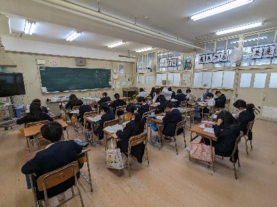 理科の授業の様子です。プレテストをしていました。問題量が多く大変でしたが、集中して取り組んでいました。