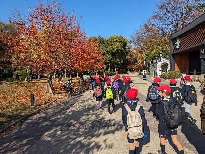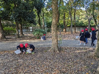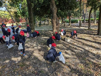 どんぐりを拾っています。公園は、まだ秋の気配です。