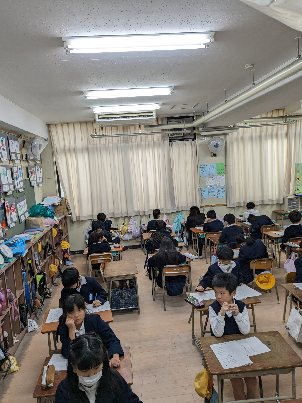 国語の調査の様子です。初めての経年調査です。落ち着いてがんばりましょう。