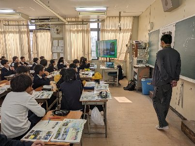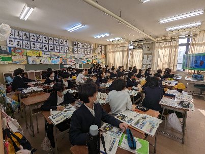 理科の授業の様子です。NHKフォースクールを視聴していました。火山の学習でした。近くに火山がないので、映像資料は役に立ちますね。画面には、有珠山の噴火の様子が映っていました。
