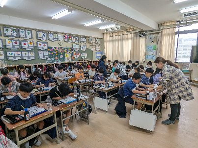 書写の学習の様子です。小筆を使って、名前を書く練習問題をしていました。自分の名前を上手に書けると、うれしいですよね。お手本を見て、しっかり練習しましょう。