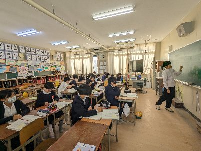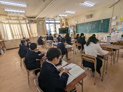 国語の授業の様子です。習熟度別少人数で学習をしていました。「ヒロシマのうた」の学習をしていました。戦中から戦後を舞台にした物語文です。登場人物の心情の変化をしっかり読み取ってほしいと思います。少し悲しい物語です。