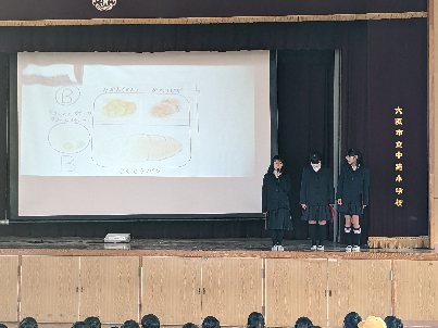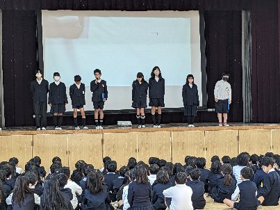 講堂で児童集会を行いました。今日は、給食委員会からの集会でした。献立コンクールを行いました。3種類のメニューをプレゼンテーションして、全員の投票で一位を決めます。結果は後日お知らせします。