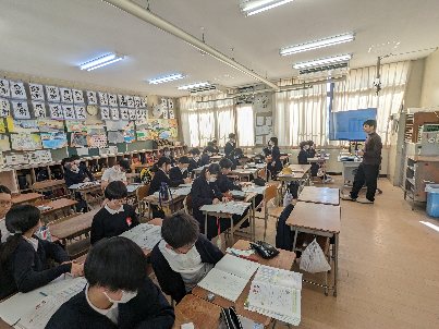 算数の授業の様子です。習熟度別少人数で学習をしていました。散らばりを分析して考えていました。グラフをどう読み取るかの学習です。これからの社会では、この力を求められるのではないでしょうか。しっかりと読み取る力を身につけておきましょう。