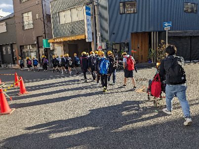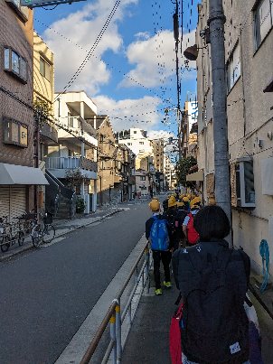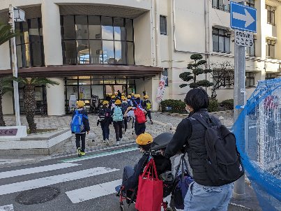 おみやげをもらって学校に着きました。