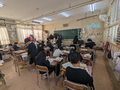 算数の授業の様子です。三角形の面積の練習プリントをしていました。丸つけが終わったら、デジタルドリルもして自分で学びを進めましょう。