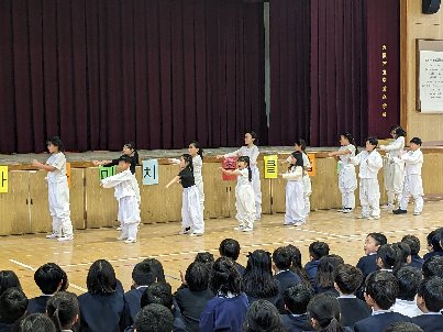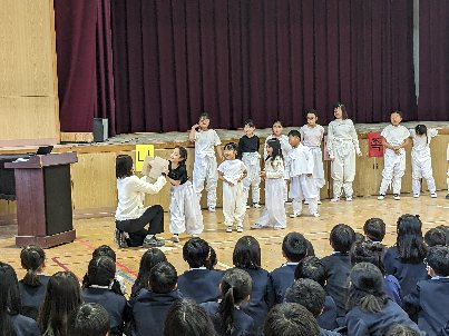 最後に、テコンドーの型を披露しました。最後には、板割の妙技もありました。全員見事に板を割っていました。みんなからは、称賛の拍手が送られました。