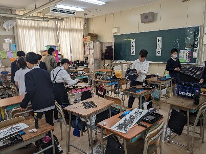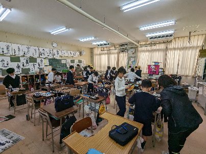 国語の授業の様子です。毛筆で書き初めをしていました。縦長の半紙に書くので、書きにくかったかな。後片付けをしっかりやりましょう。