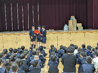 校長先生のお話に続いて、看護当番から先週の反省と今週の目標についての話がありました。最後に、図書委員会から、スタンプラリーのお知らせがありました。商品んもあるようです。みんながんばりましょう。