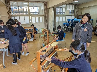 6年生がアトリエSUYOさんの力をお借りして、さをり織りを行いました。自分のお気に入りの糸を選んで、ていねいに織り上げていきました。きちんと仕上げをしたものが卒業前に届きます。楽しみですね。