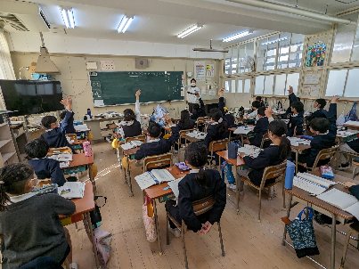 国語の授業の様子です。説明文の学習をしていました。全体を3つの構成に分けていました。どのように分けたのか自分の考えを、発表していました。