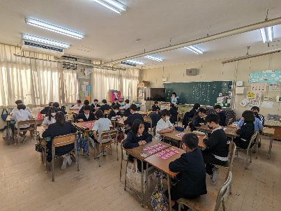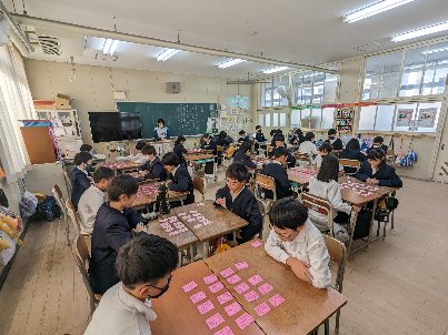 学級活動の授業の様子です。百人一首の練習をしていました。来週の大会まで後1週間です。まだ時間があるのでしっかり覚えましょう。