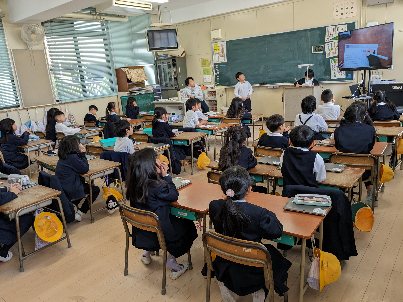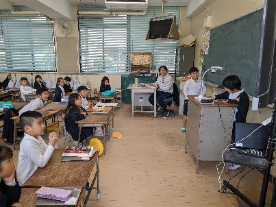 算数の授業の様子です。百ます計算の様子をモニターで写していました。書画カメラを使うと見ることができます。すごいですね。
