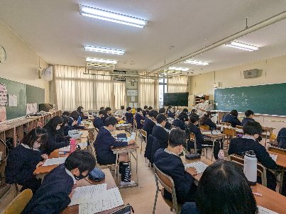 道徳の授業の様子です。「この世には成功か大成功しかない」ということを考えていました。いろいろなことにチャレンジしていく中で、小さな成功を積み重ねていく事の大切さについて話し合っていました。その大切さを理解し、目標に向かって挑戦していってください。