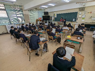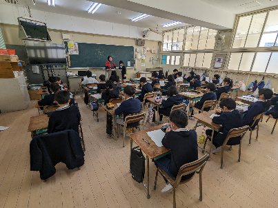 音楽の授業の様子です。みんなで、「一人のキミが生まれたとさ」を歌っていました。中川翔子さんが歌った、「ふるさと再生日本の昔ばなし」のオープニング曲だそうです。とってもいい楽曲です。