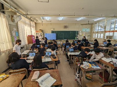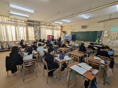 国語の授業の様子です。自分の意見を発表するための資料作りをしていました。主張することを分かりやすく説明するためには、資料は欠かせませんね。いい資料ましょう。