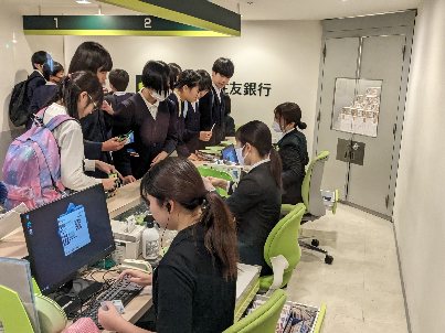 アクティビティの様子です。銀行で、キッゾの出し入れをしていました。