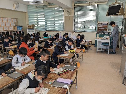 算数の授業の様子です。百ます計算をしていました。みんなで、大きな声で答え合わせをしていました。百ます計算は、速さと正確さが問われますね。何度もすることで自然と身についていきます。がんばりましょう。