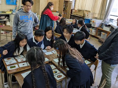 民族クラブの活動の様子です。カルタ大会をするために、単語を覚える活動をしました。画面を見ながら、発音を確かめて、低・高学年に別れてカルタをしました。すぐに取れるようにしっかりと覚えておきましょう。